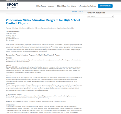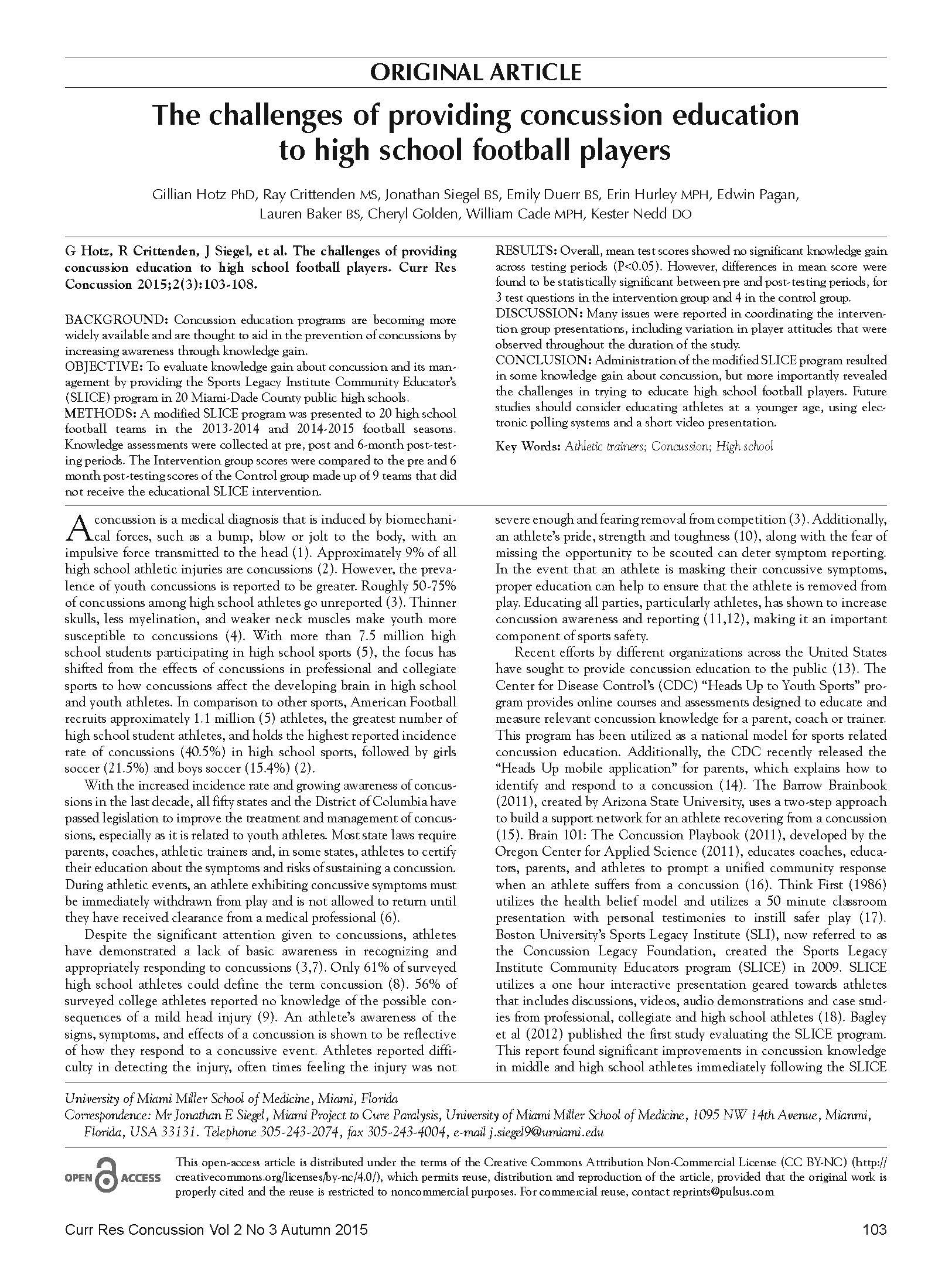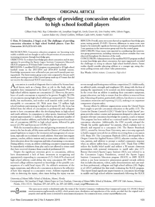 The challenges of providing concussion education to high school football players (2015)