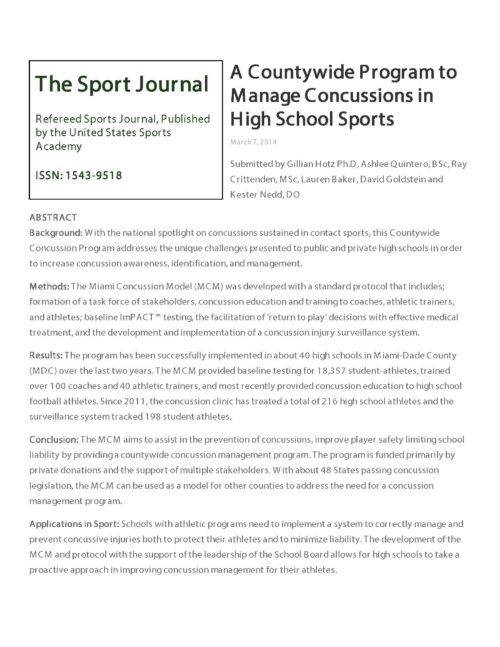 Return to Play and Learn: Findings from a Countywide High School Sports-Related Concussion Program (2023)