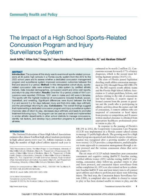 The Impact of a High School Sports-Related Concussion Program and Injury Surveillance System (2025)
