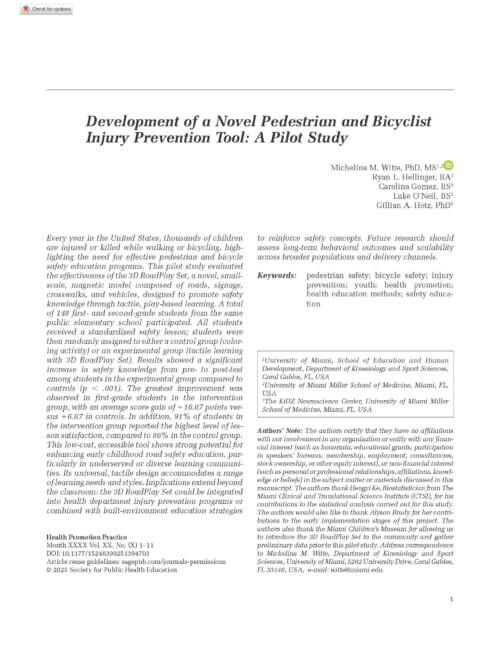 Development of a Novel Pedestrian and Bicyclist Injury Prevention Tool: A Pilot Study (2025)