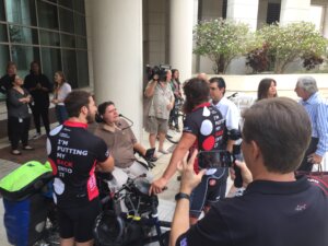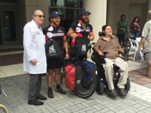 Right after Bike305’s Bike to Work Day, the Miami Project staff and our BikeSafe team had the chance to meet Dr. Lloyd Collier and Dr. Louis Snellgrove on the final leg (Miami-San Francisco) of their 2018 Guinness World Record World Tandem Challenge attempt. Learn more at worldtandem.com.